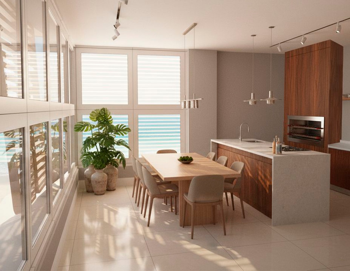 A integração dos ambientes proporciona fluidez e iluminação natural, enquanto as 2 vagas de garagem exclusivas reforçam o padrão elevado de conveniência e segurança.