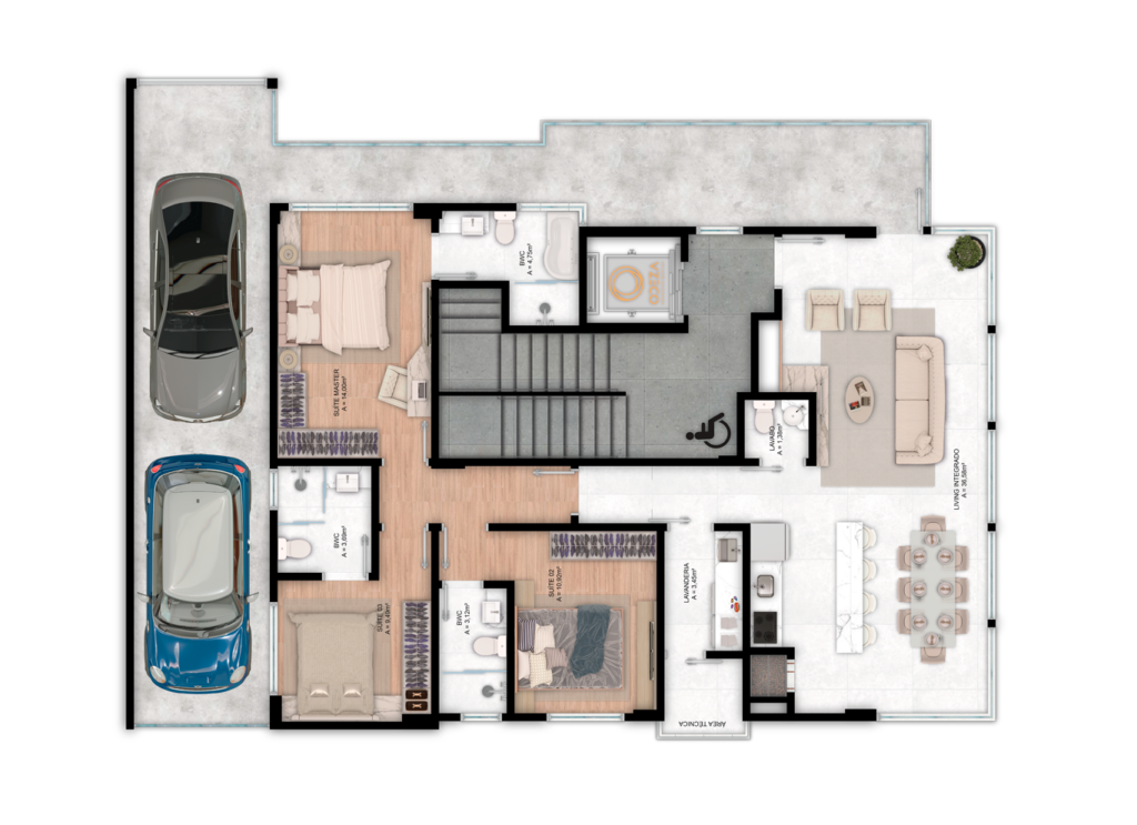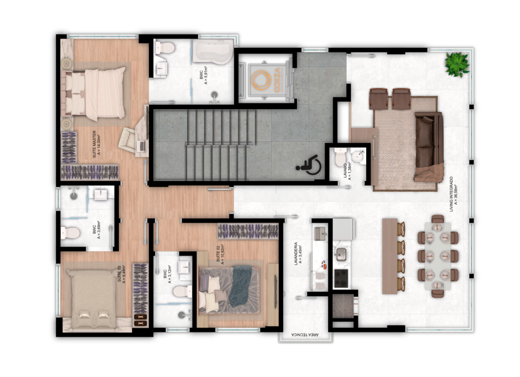 Uma planta que traduz o verdadeiro significado de morar bem, com equilíbrio perfeito entre funcionalidade e sofisticação.